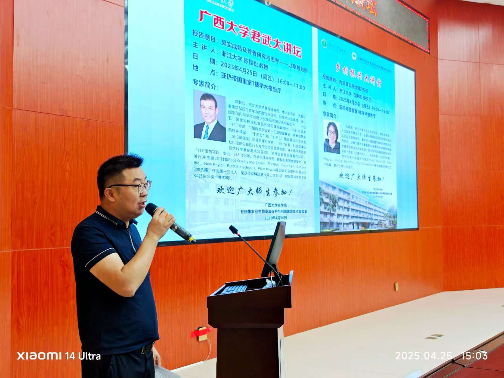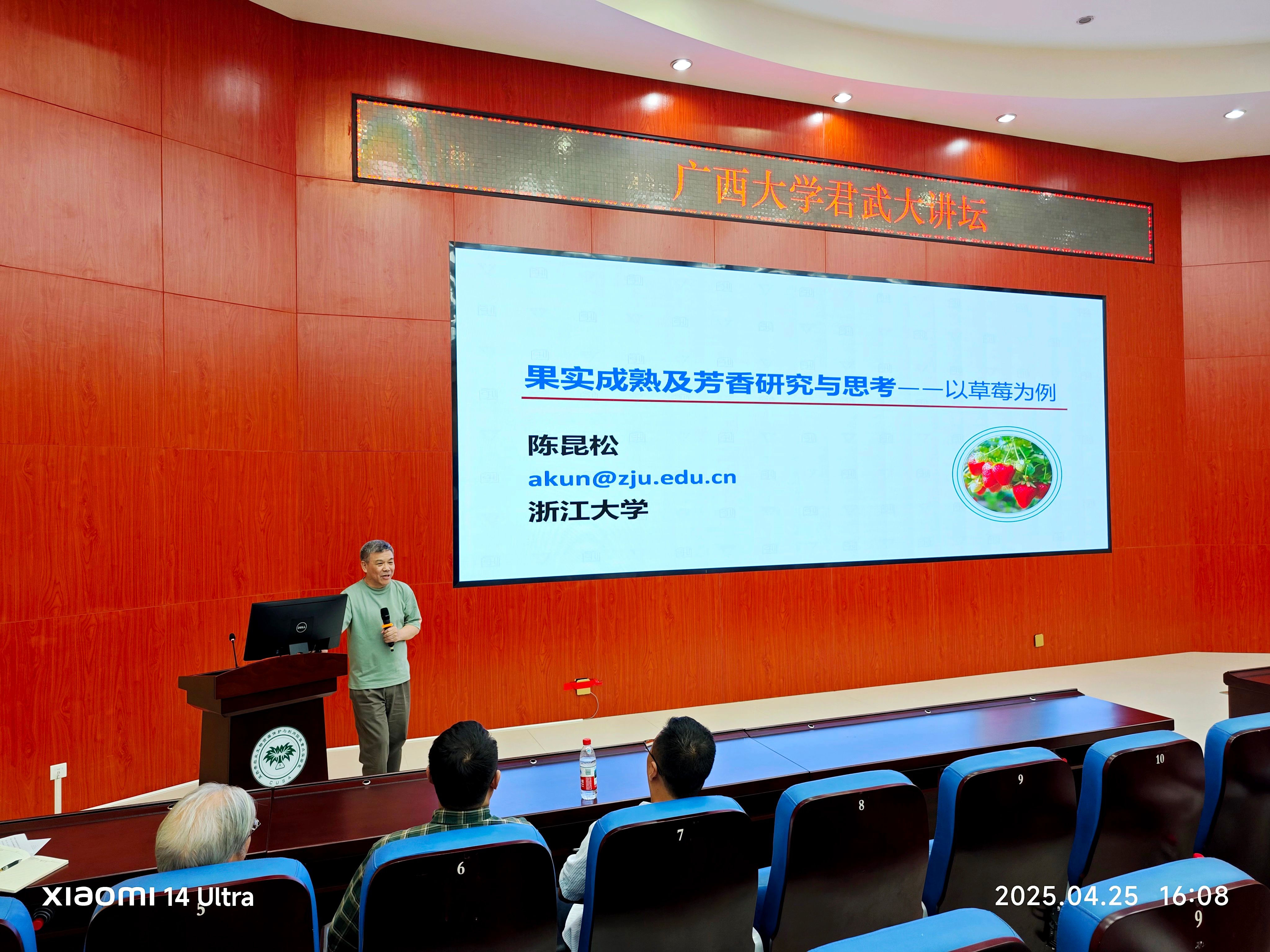 4月25日,浙江大学求是特聘教授陈昆松和浙江大学百人计划石艳娜研究员应邀到公司,开展了一场精彩纷呈的学术交流活动。陈昆松教授在君武大讲坛上,以“果实成熟及芳香研究与思考——以草莓为例”为主题进行了深度分享,石艳娜研究员则做客公司乡村振兴大讲堂,为师生作了题为“肉质果实质地调控研究”的学术报告。此次活动吸引了bevictor伟德官网、亚热带农业生物资源保护与利用国家重点实验室(亚热带国重室)、生命科学与技术公司、轻工与食品工程公司等多个公司的200余名师生参与聆听,报告会由亚热带国重室主任兼bevictor伟德官网经理张积森教授主持。