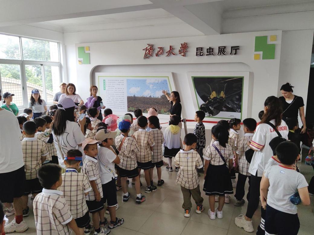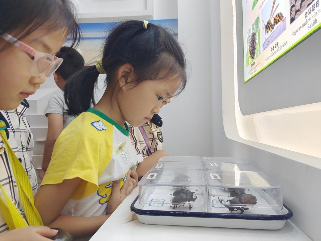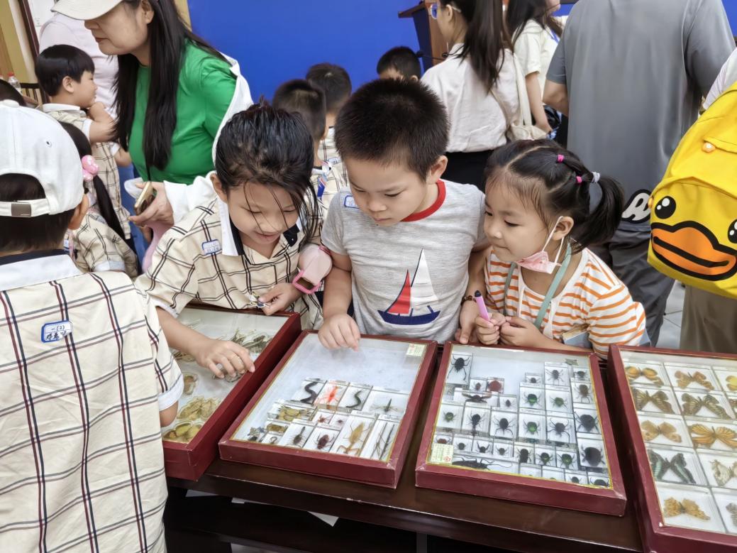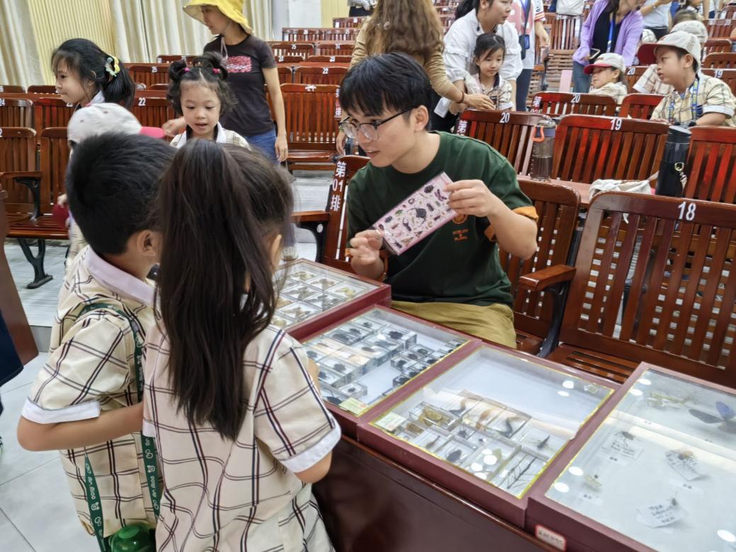 讲座结束后,在高老师与志愿者的带领下,小朋友们分批参观了昆虫展厅,并近距离参观了从实验室带来的活体昆虫样本。这些形状各异的昆虫激起了小朋友们的好奇心,大家纷纷围着志愿者们提问。