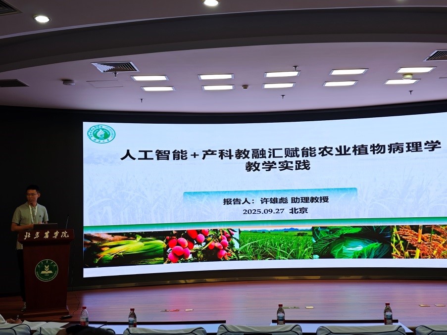 本次研讨会以“创新融合与发展,赋能新农科人才培养”为主题,聚焦植物病理学教学理念革新与教学方式升级等关键议题。会上公司许雄彪老师以“人工智能+产科教融汇赋能农业植物病理学教学实践”为题作专题报告,系统介绍了公司近年来在农业植物病理学课程改革方面的探索举措与实践成效,获得与会专家的广泛关注和高度评价。
