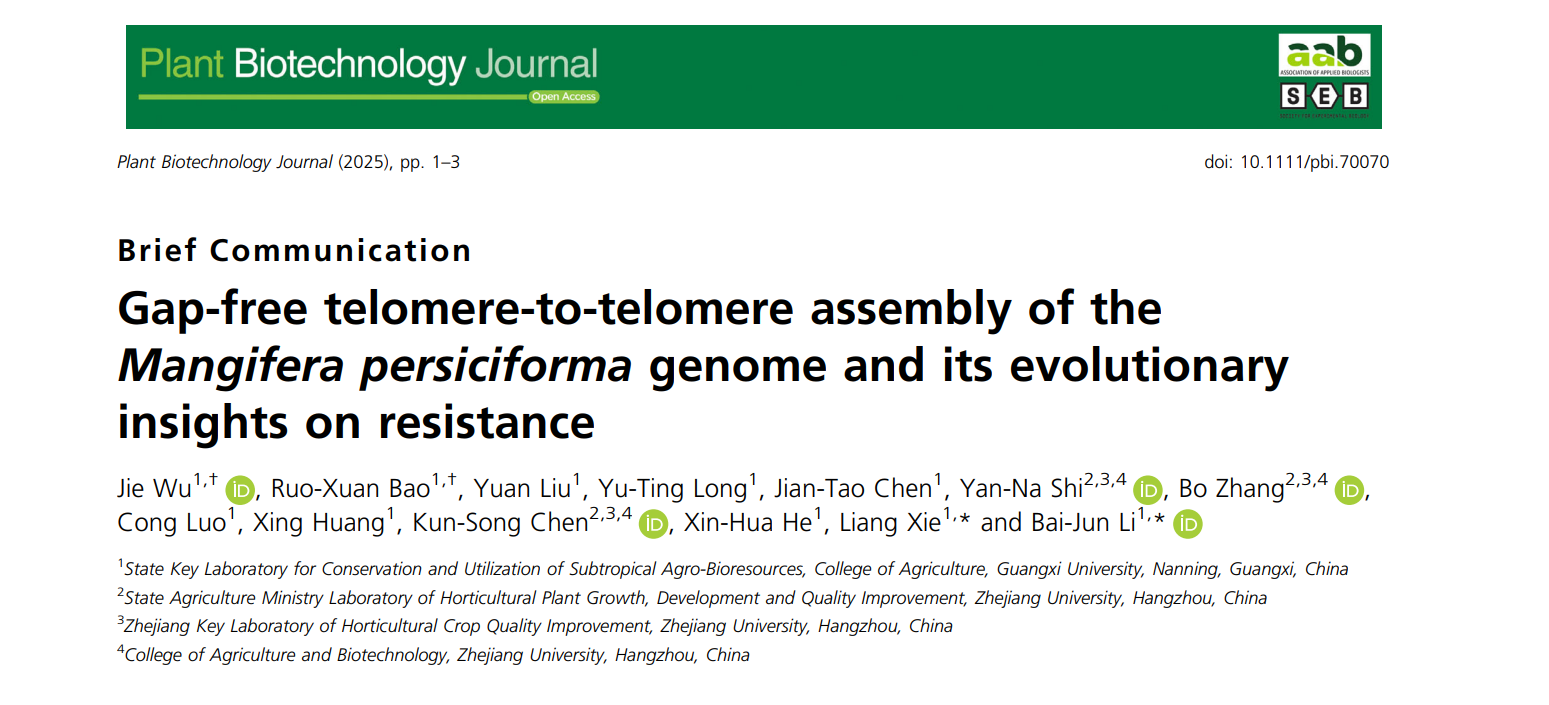 近日,bevictor伟德官网芒果团队在相关研究中取得重要进展,成果‘Gap-free telomere-to-telomere assembly of the Mangifera persiciforma genome and its evolutionary insights on resistance’在期刊Plant Biotechnology Journal发表。该团队首次完成了天桃木T2T基因组组装,获得了大小为 382,840,341 bp的高质量基因组。