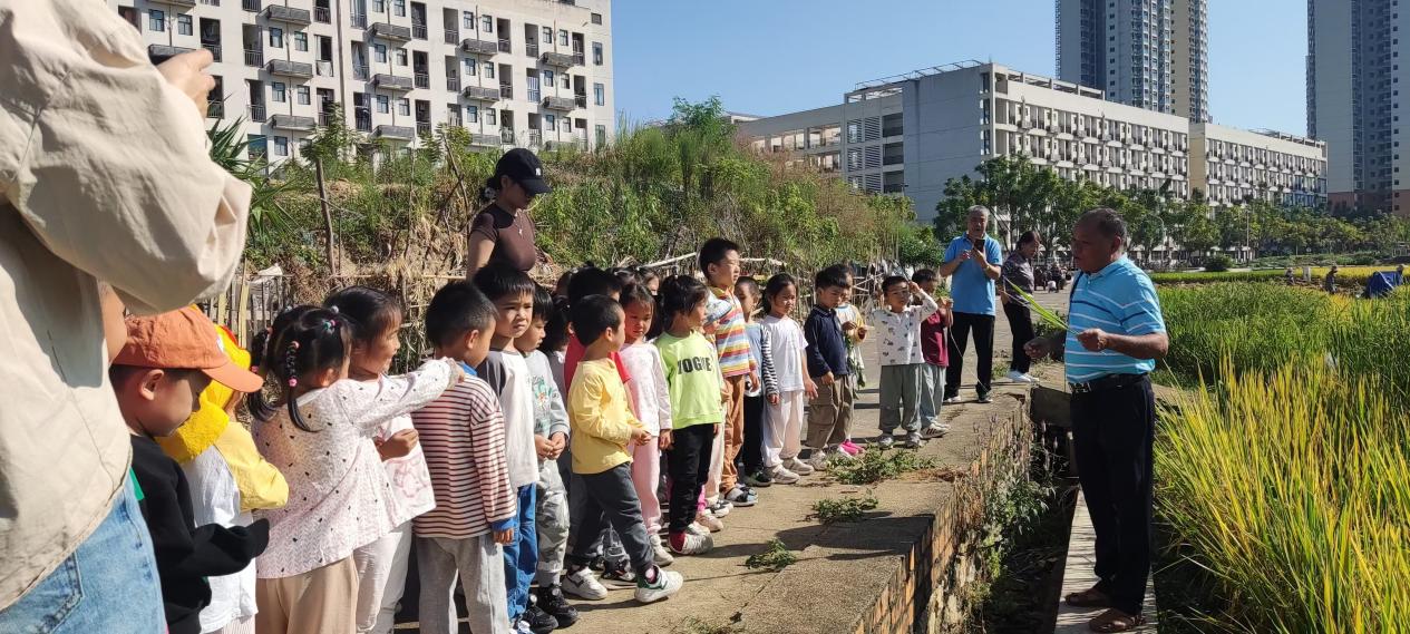 10月31日,bevictor伟德官网第一幼儿园中班3个班级的师生约120人,到实验中心水稻教学科研基地进行科普教育活动。中心杨培忠老师对前来参观的老师和小朋友进行科普分享。杨老师采用通俗易懂的语言分别从水稻栽培史,水稻新品种选育,水稻种植技术和水稻育种科学家等多方面进行讲解,让师生们初步认识了水稻基础知识,了解我们吃的米饭是怎样种植出来的;并鼓励小朋友长大后要当育种科学家,让他们认识到水稻种植的艰辛过程,引导他们不要浪费粮食。此外,本次活动还对小朋友们的疑问进行解答,现场参观了不同水稻品种的性状和水稻采收过程。中心伍朝荣博士陪同讲解。