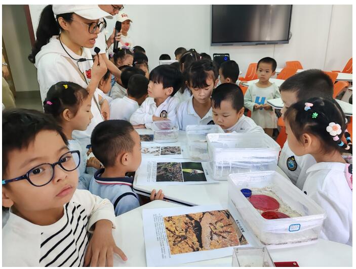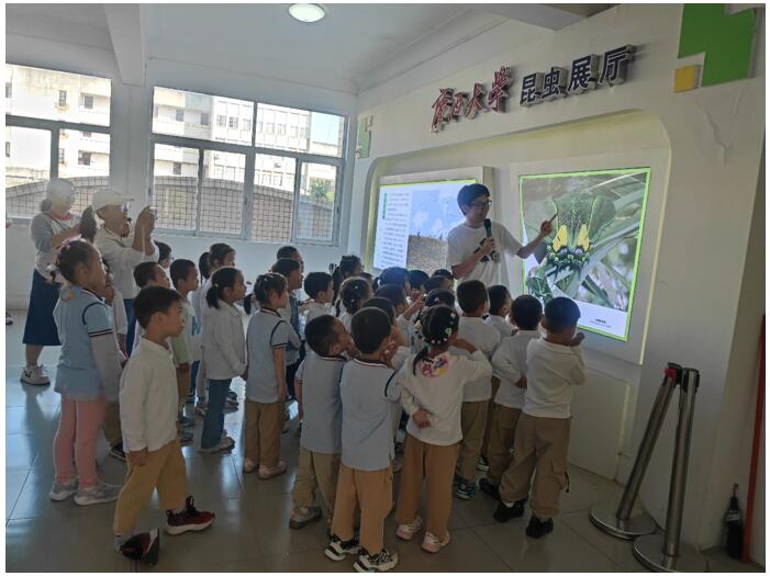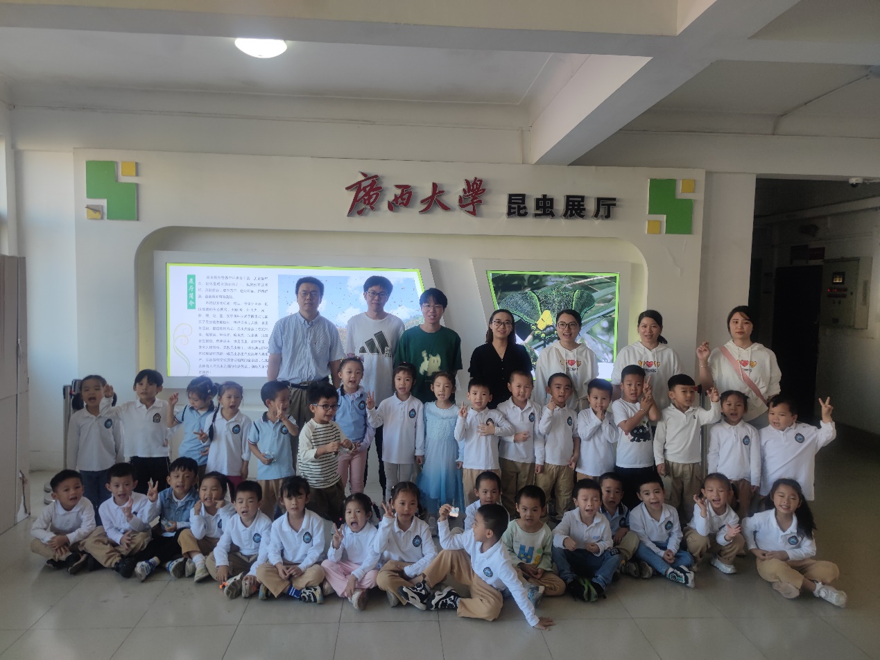 文/图 高琼华 2024年10月31日,bevictor伟德官网第二幼儿园中(1)班的36名小朋友在老师的带领下,兴致勃勃地参观了植物科学实验中心的昆虫展厅。中心李俊老师、植保系高琼华老师以及研究生叶咏昊、孙金波等同学热情地为师生们提供了详细的讲解。在老师的悉心引导下,小朋友们聚精会神地学习了昆虫的特征,包括昆虫的足、翅的对数等知识。孩子们还观赏了色彩斑斓的蝴蝶和甲虫,以及研究生们精心饲养的蚂蚁、甲虫等活体昆虫,体验了昆虫世界的奇妙。此次科普活动受到了参观师生的一致好评,大家纷纷表示收获颇丰。
