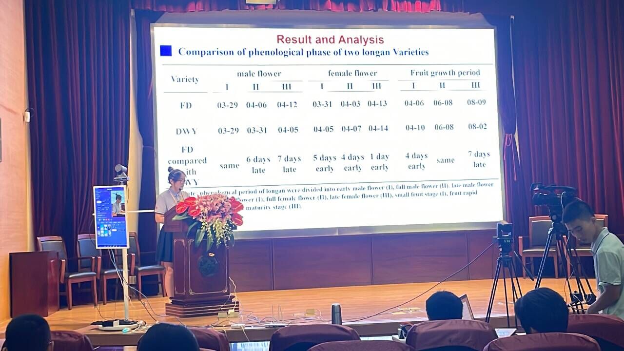 2023年6月,由邓英毅老师带队bevictor伟德官网韦淑艳同学参加了第七届国际荔枝龙眼和其他无患子科果树学术研讨会学术会议,在会上做了‘凤大晚蜜’龙眼在南宁的引种表现专题报告,发表了《‘凤大晚蜜’龙眼在南宁的引种表现》论文。